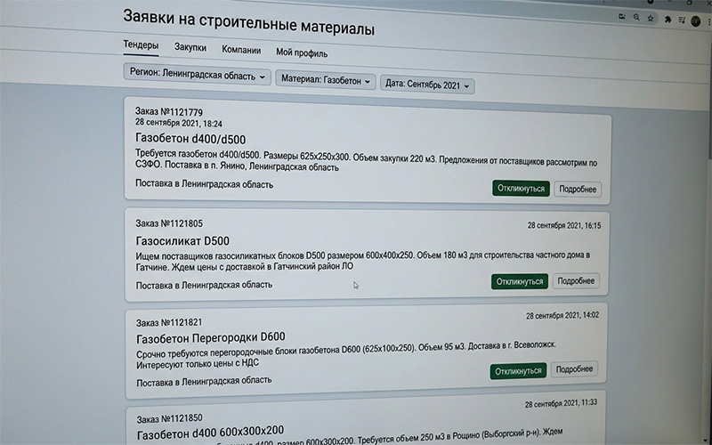 Тендеры на газобетон